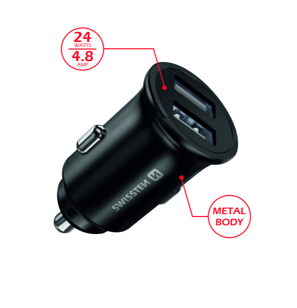 SWISSTEN CAR CHARGER WITH 2x USB 4,8A METAL...